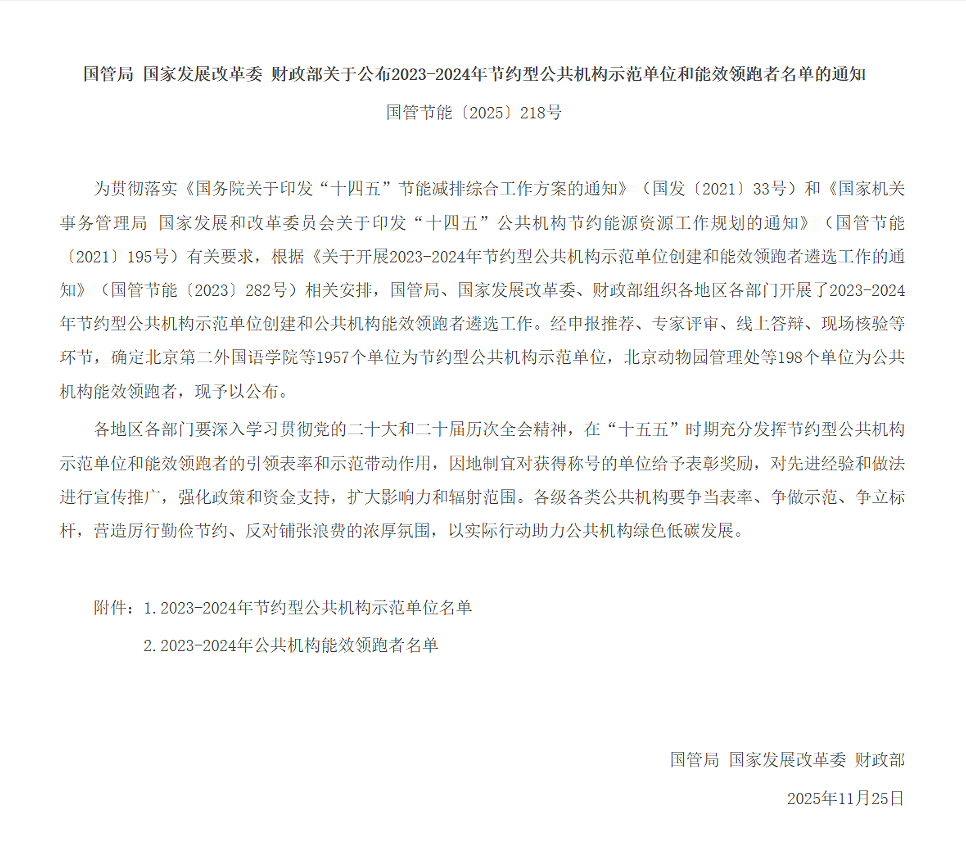 近日,国家机关事务管理局、国家发展和改革委员会、财政部联合公布2023—2024年节约型公共机构示范单位和能效领跑者评审结果,开云电竞官方网站图书馆凭借在节能降耗与绿色发展领域的扎实举措和显著成效,成功获评“2023—2024年节约型公共机构示范单位”。