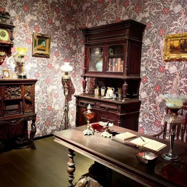 展览不仅展示油灯作为照明工具的功能演进,更深入探讨其如何重塑维多利亚时期的家庭结构、社交文化与夜间经济。通过复原油灯在客厅、书房、咖啡馆等场景中的使用情境,并结合梵高等名家画作辅助呈现,生动勾勒出一幅“光推动现代生活”的历史画卷。