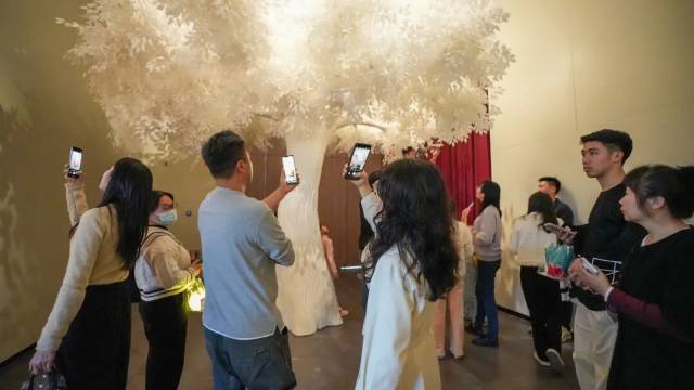 创新设置“MR故事体验区”,观众可通过混合现实设备化身沉香或阿拉丁,在互动叙事中亲身经历“劈山救母”与“神灯许愿”的经典寓言。展览尾声更设有“点亮心灯”集体创作环节,观众可书写心愿、悬挂心灯,共同点亮象征希望的光之树,实现从历史观赏到情感共鸣的升华。