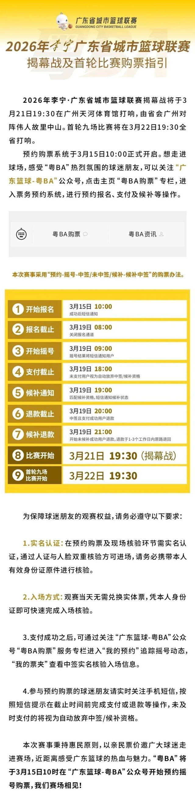 首场粤BA比赛定于3月22日进行