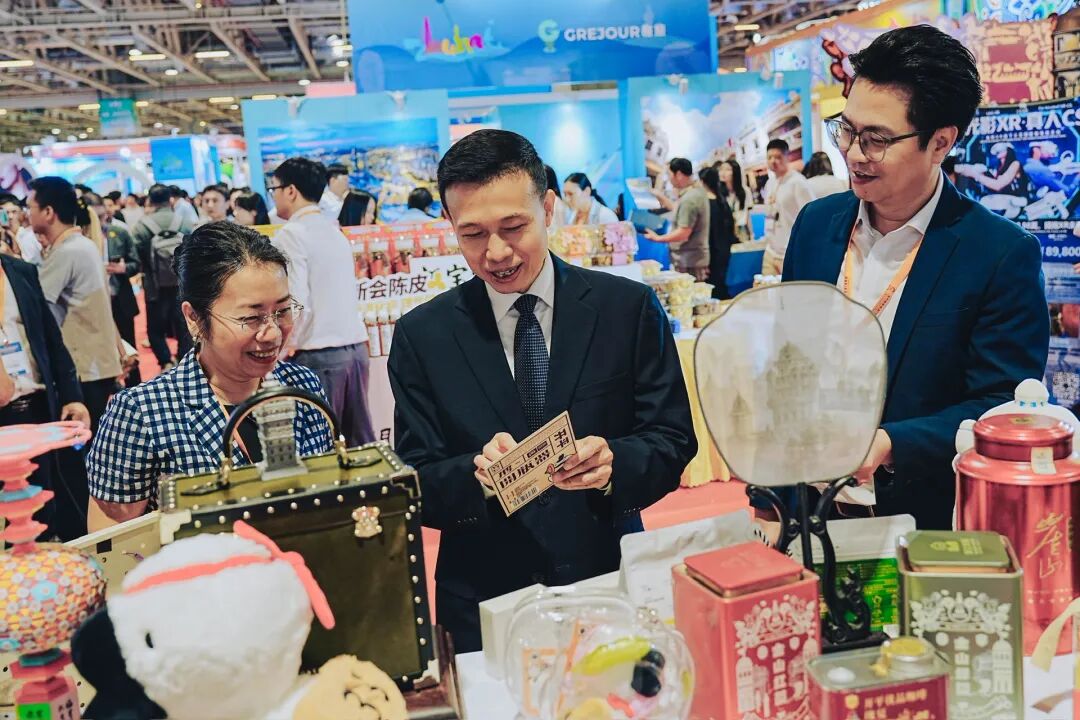 展会期间,广东省文化和旅游厅二级巡视员黄锡忠专程前往江门展位巡展指导,对江门演艺+文旅产品创新宣传推广模式给予充分认可。