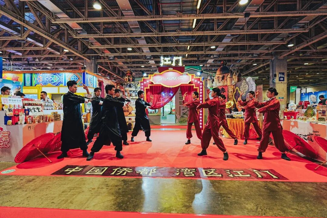 为进一步提升参展吸引力,让观众沉浸式体验侨乡文旅魅力,江门还精心策划特色文旅展演与惠民活动。开平赤坎华侨古镇现场带来《一代宗师》主题咏春表演,以刚柔并济的演绎,展现侨乡武术文化底蕴与古镇独特风情,赢得现场观众阵阵掌声。