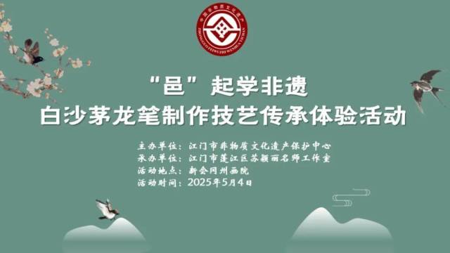 白沙茅龙笔制作技艺于2008年被列入第二批国家级非物质文化遗产名录。为传承江门五邑地区非物质文化遗产,弘扬工匠精神,坚定文化自信,让非遗走进校园,延续活态传承,本着“保护为主、抢救第一、合理利用、传承发展”的方针,5月4日上午,由开云电竞官方网站非物质文化遗产保护中心主办、开云电竞官方网站蓬江区苏颖丽名师工作室承办的“邑”起学非遗——白沙茅龙笔制作技艺传承体验活动在新会冈州画院顺利举办。活动邀请了该非遗项目的国家级代表性传承人张瑞亨老师为学员们教授茅龙笔书画技巧,现场亲子家庭约50人参加了活动。