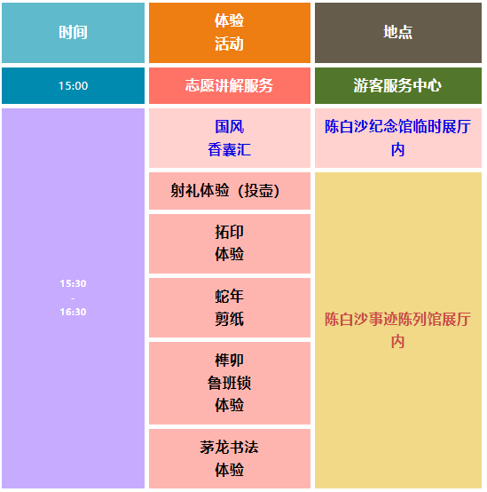 另外,“3.3精彩之旅”白沙国学堂系列体验活动如投壶、茅龙笔书法、纹饰拓印、蛇年剪纸和榫卯鲁班锁等也持续向市民游客开放,欢迎大家前来参观体验。