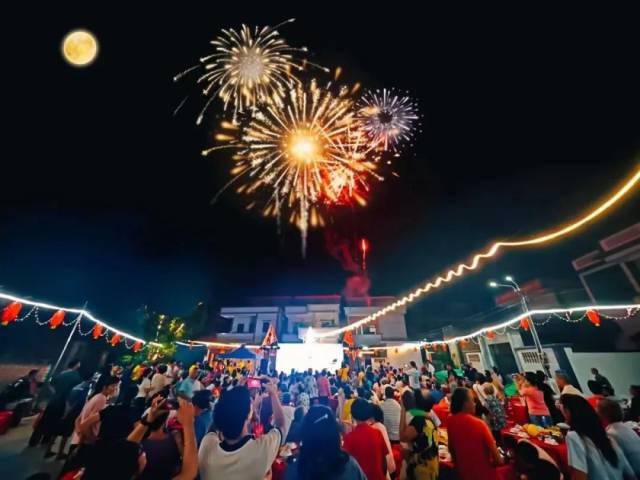 川山群岛举办烟火盛宴,市民游客驻足在沙滩边上,观赏烟花,此外,上川岛飞沙滩景区再现猜谜乐趣,下川岛情人路则举办趣味横生的游园活动,同样圈粉无数。
