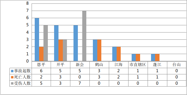 全市发生生产安全事故23起:恩平6起、开平5起、新会5起、鹤山3起、江海2起、市直辖区11起、蓬江1起。台山未发生生产安全事故。