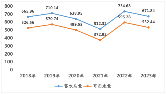 表2 2018-2023年江门4月1日33宗大中型水库库容统计(百万方)