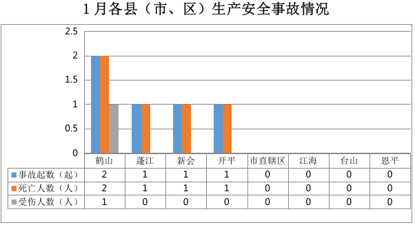 鹤山2起、蓬江1起、新会1起、开平1起。市直辖区、江海、台山和恩平未发生生产安全事故。