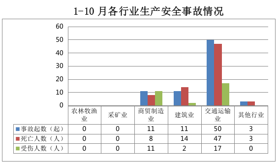 全市共发生生产安全事故75起,其中商贸制造业11起、占15%,建筑业11起、占15%,交通运输业50起、占66%,其他行业3起、占4%。农林牧渔业和采矿业未发生生产安全事故。