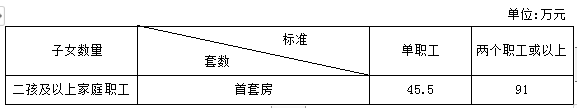 二套房:在我市购买二套自住住房的多子女家庭职工,住房公积金最高贷款额度提高到我市住房公积金最高贷款额度的1.3倍。