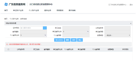 (2)导入EXCEL文件需校验单位账号、 启封人数、 封存人数是否一致;校验姓名、证件号、证件类型、公积金账号是否存在,是否为本单位的职工。且需校验变更状态是否正确。