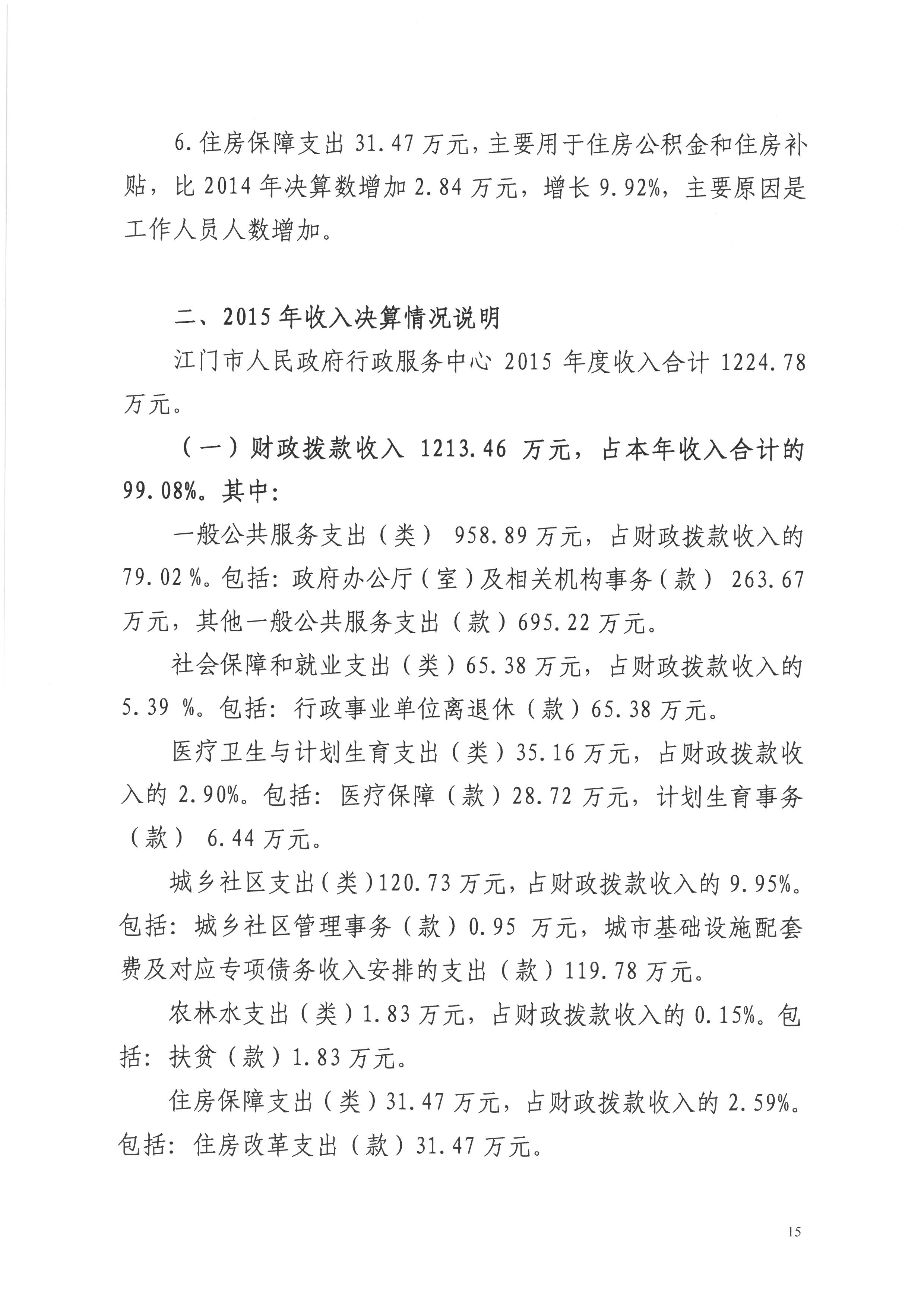2015年度开云电竞官方网站人民政府行政服务中心决算