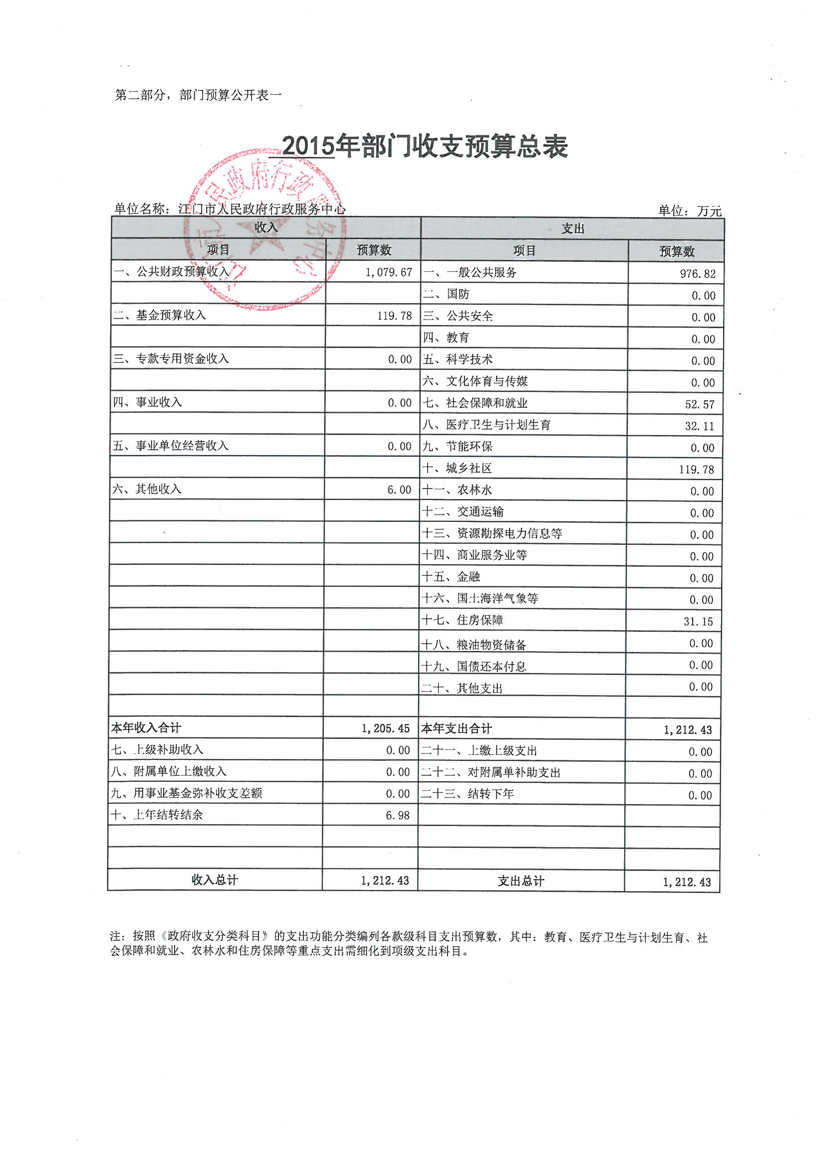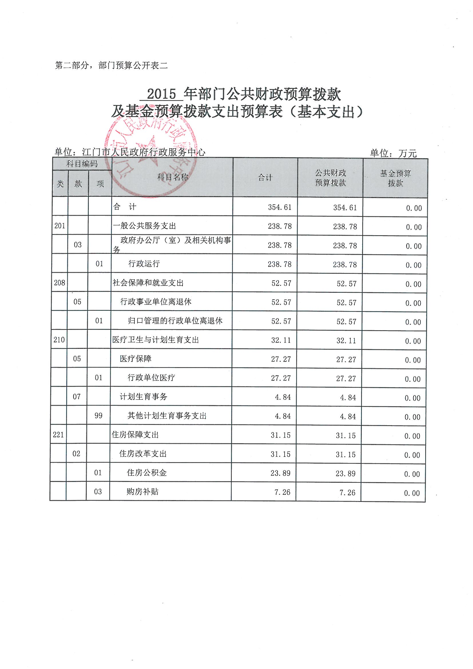 第二部分 2015年开云电竞官方网站人民政府行政服务中心部门预算表