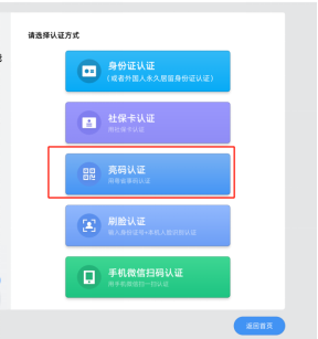1.在“粤智助”登录时,在选择认证方式界面选择“亮码认证”。