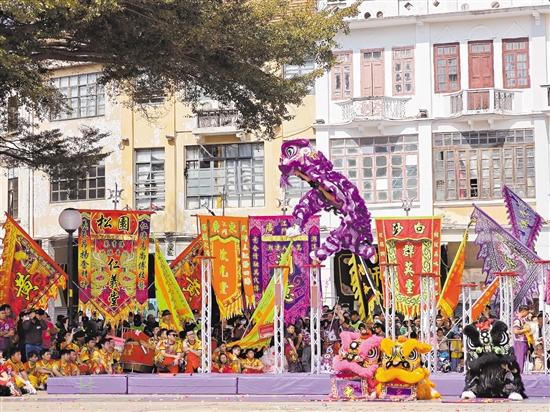 醒狮随着乐鼓声舞动,完美展示各式高难度动作。
