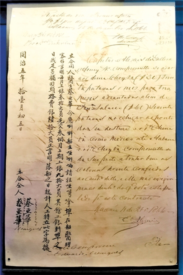 据介绍,这张合同是该馆在筹建之初通过文物征集方式收入馆藏的,是目前国内发现的唯一一份有关劳工出洋跟船医生合同书。而在华侨文献中较为珍贵的雇主与华工签订的劳工合同,市博物馆收藏有200多份,这在国内同类博物馆中是非常少见的。