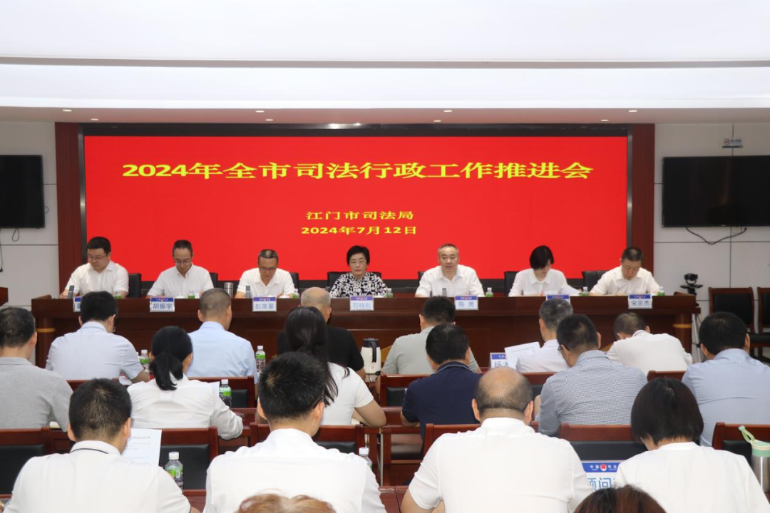 会议强调,2024年是江门高质量发展的提力加速年,也是举全市之力深入推进“百千万工程”的关键一年。今年以来,全市司法行政系统坚持务实进取、守正创新,扎实履行“一个统抓、五大职能”。一是坚持政治建设为引领,推动司法行政队伍建设行稳致远;二是坚持法治统筹有力有效,全面依法治市工作走深走实;三是坚持法治政府建设扎实推进,依法行政工作不断提质增效;四是坚持优化优质的法律服务供给,法治保障高质量发展更加坚定有力;五是坚持深化基层社会治理,平安江门建设根基更加夯实巩固。涉外法治建设出新出彩,深圳国际仲裁院江门中心运营一年交出标的总额超70亿元的亮眼成绩单。市公共法律服务中心两度获司法部“全国公共法律服务工作先进集体”殊荣。行政执法国家级标准化试点进一步深化。法治品牌打造更加深入民心,“周六一小时”义务法律咨询活动举办100多期,“法治City Walk”活动火爆“出圈”,“和美五邑”调解工作体系更加完善。全省首部政府法律顾问工作地方标准制定出台。全市司法行政系统多个先进集体和个人受到国家、省、市表彰,市委市政府对法治江门建设和司法行政工作充分肯定。
