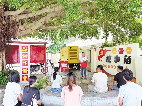 连日来,江门充分发挥新时代文明实践中心(所、站)作用,利用好“艺术党课”“音乐党课”“碉楼下的党课”“榕树下的讲堂”等特色课堂,广泛深入开展对象化、分众化、互动化的基层宣讲活动,将“书面语”转化为“家常话”,让全会精神“句句入耳”。